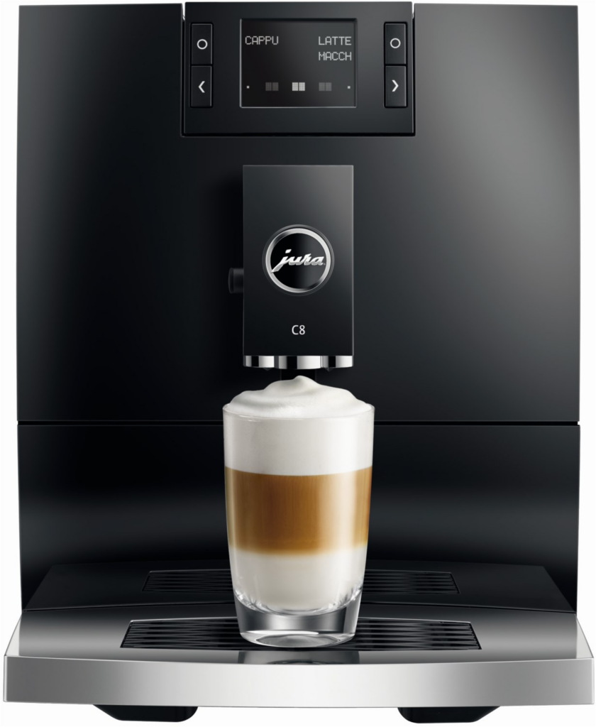 Die C8 begründet die neue Premium-Economy-Klasse von JURA. In kompakter Größe, mit leistungsstarkem Innenleben und Stilelementen der Premium-Klasse schafft sie ein Kaffeeerlebnis der besonderen Art.